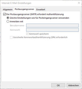 Mit den gleichen Infos wie fürs WebMail. |